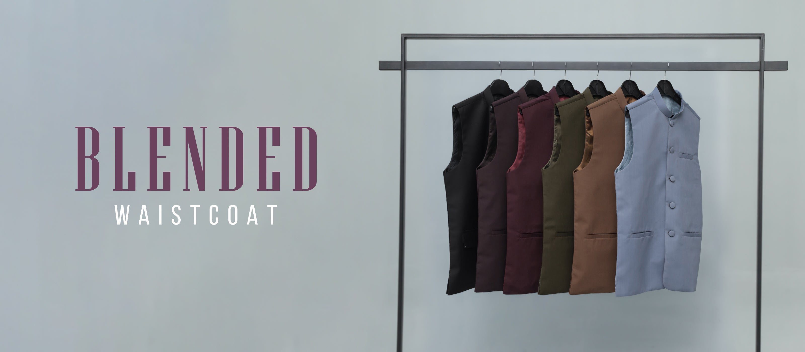 Bluish Gray With Blended Waistcoat - Round Cut & Matching Fabric Buttons - Men