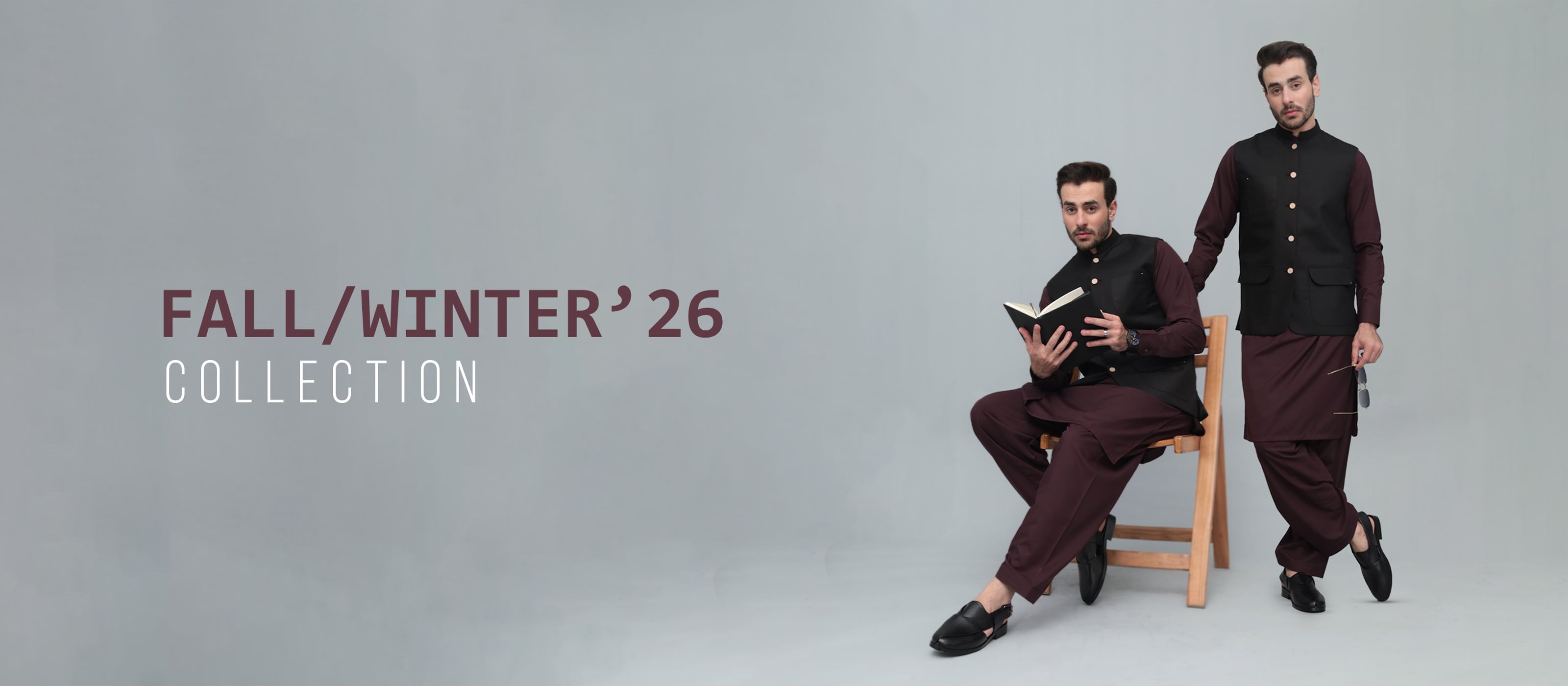 Coffee Brown French Collar Shalwar Kameez - Stitched