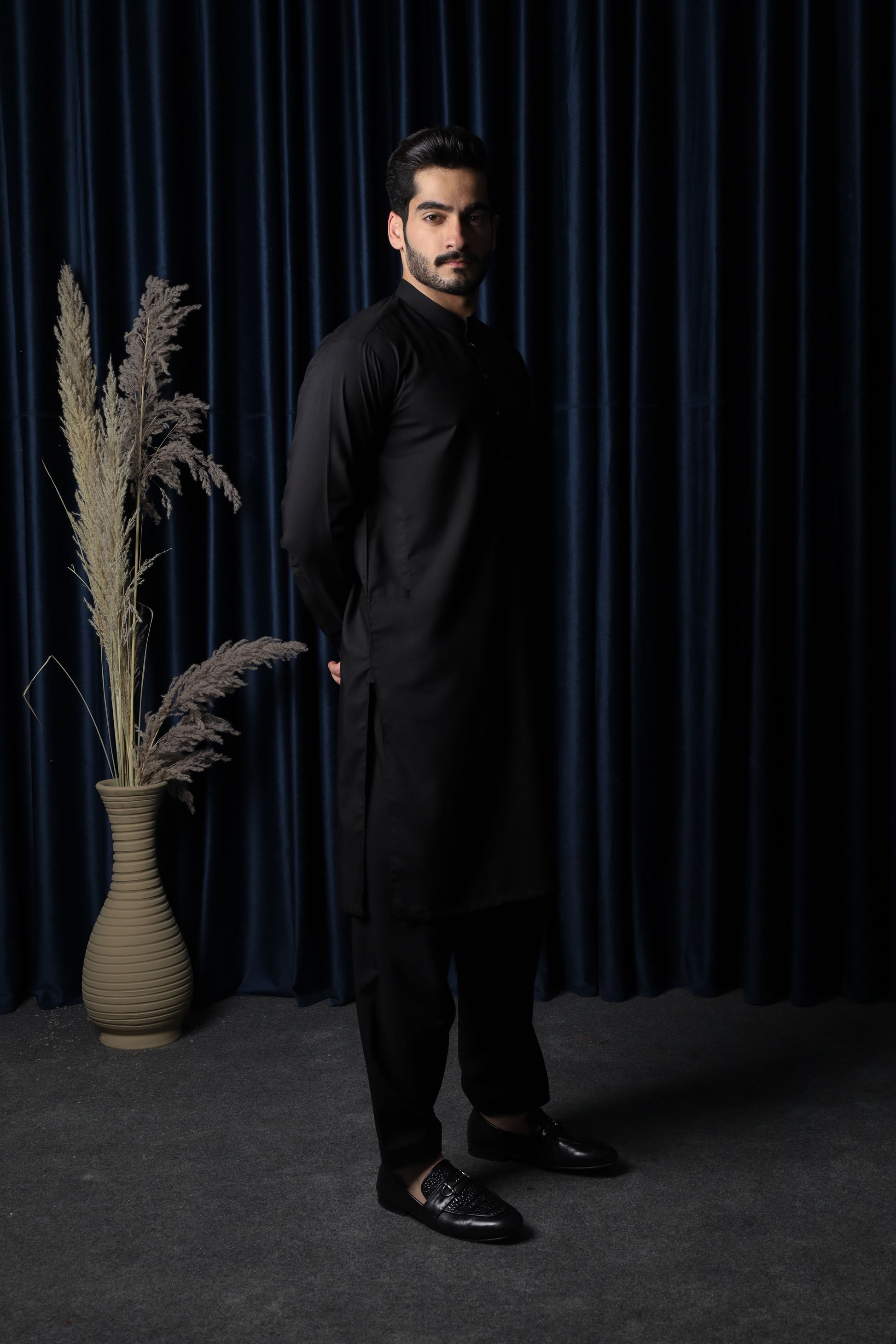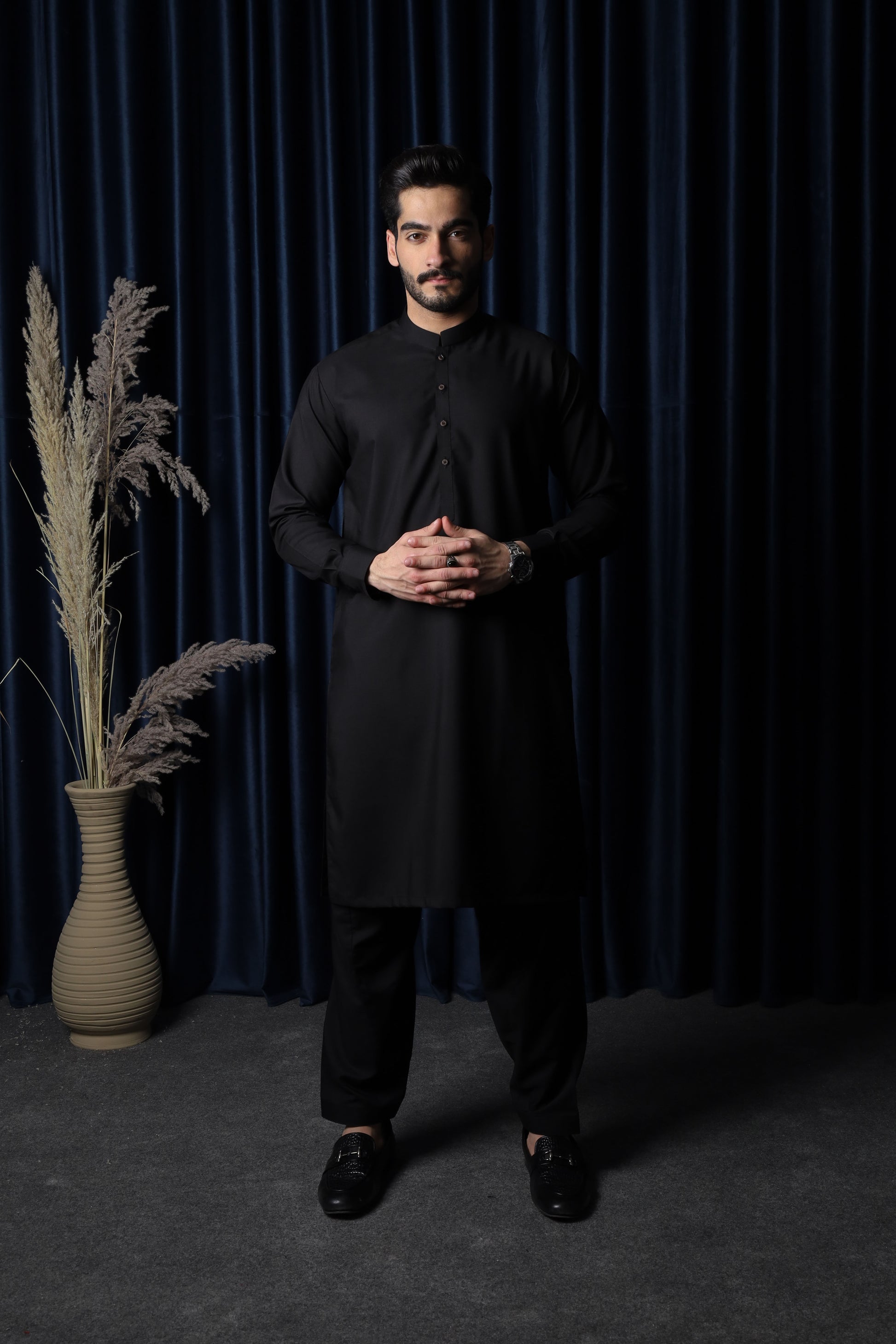 Black Blended Kameez Shalwar - Men