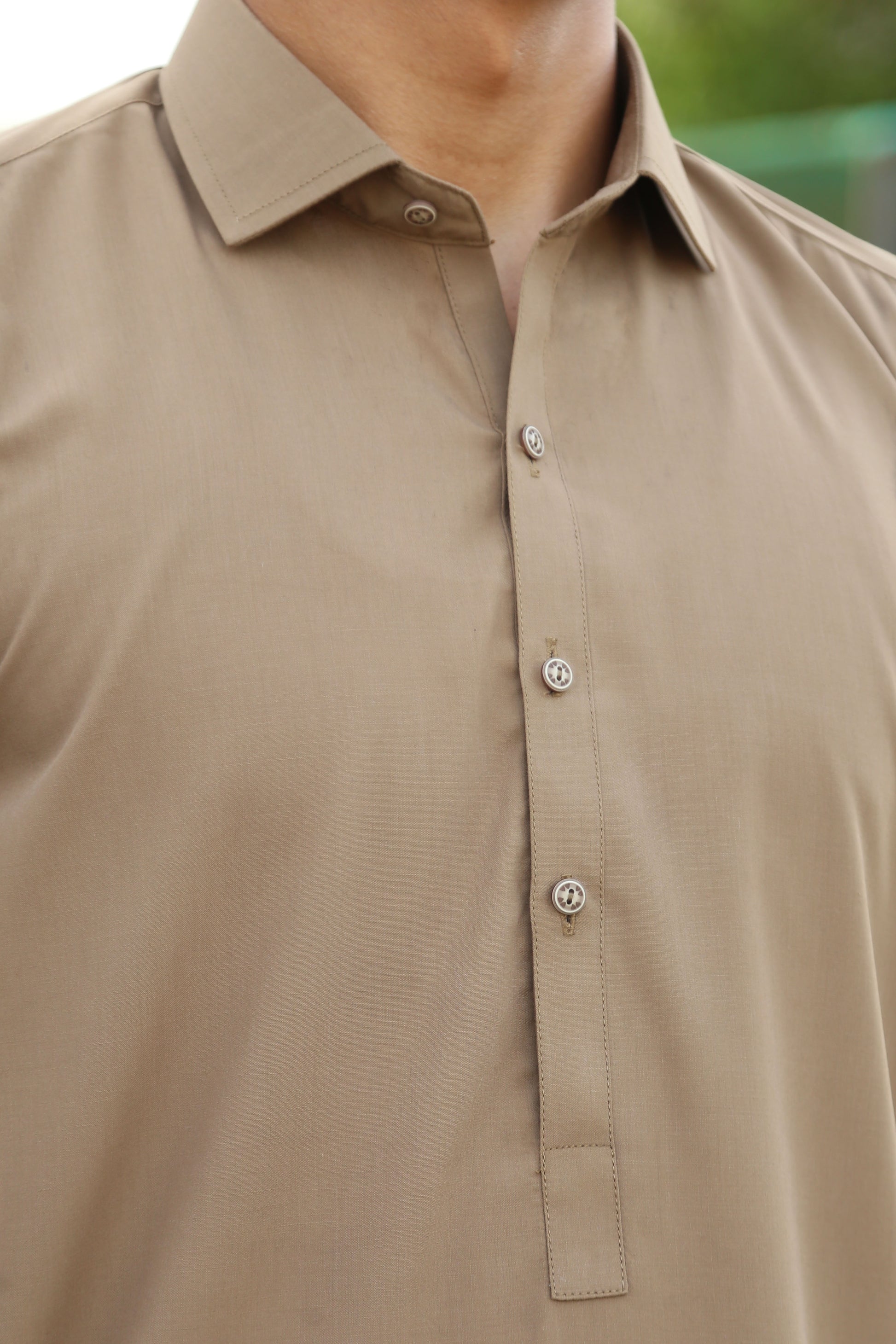 Khaki French Collar Shalwar Kameez - Stitched